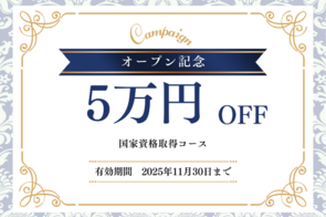 開校記念キャンペーン!5万円割引キャンペーン!!!【11月末まで】